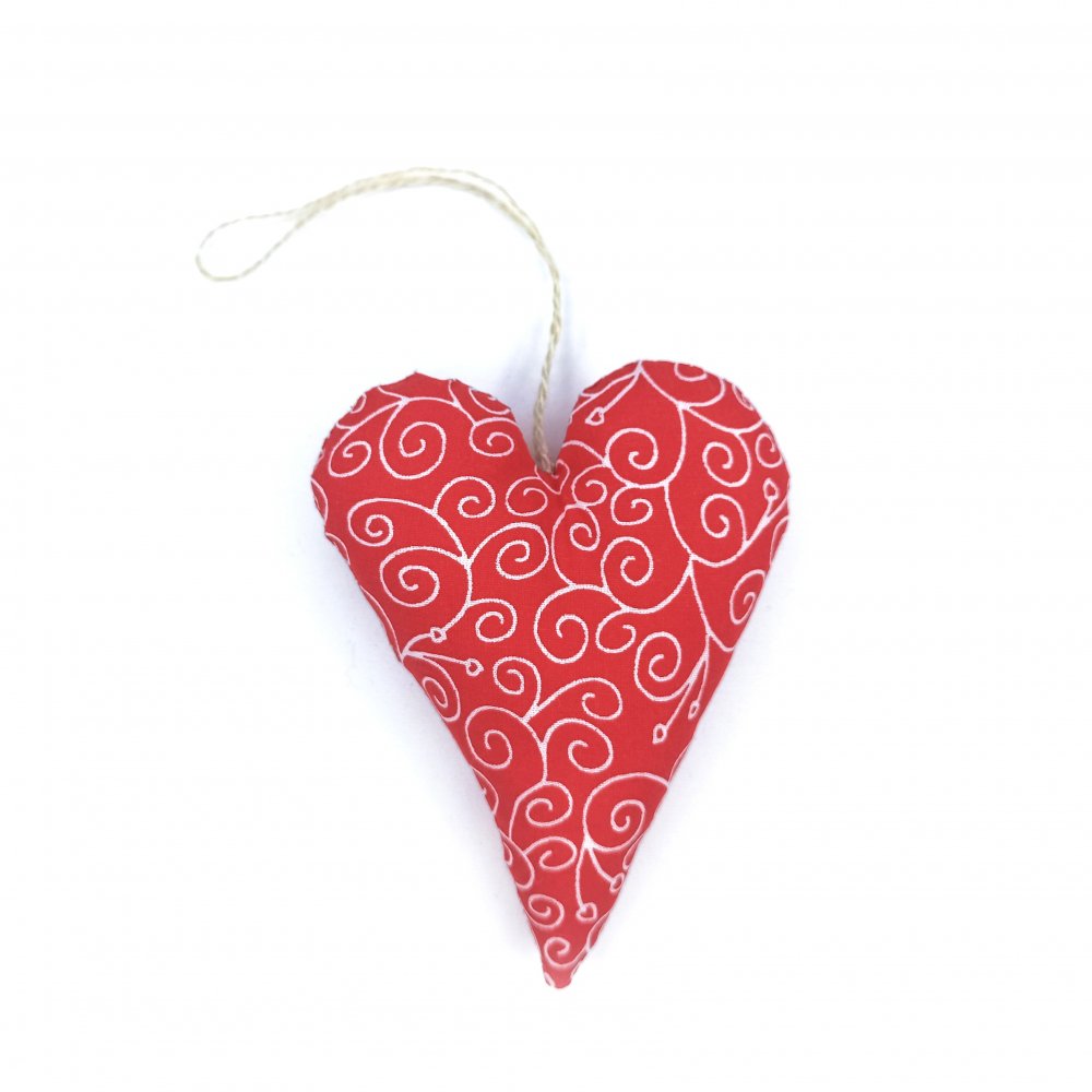 Dekorace Srdíčko Červené šijeme z bavlněného plátna a plníme antialergenním dutým vláknem.