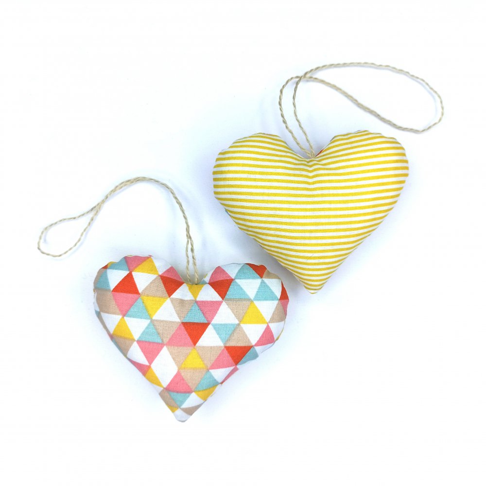 Dekorace Srdíčko Triangl šijeme z bavlněného plátna a plníme antialergenním dutým vláknem.