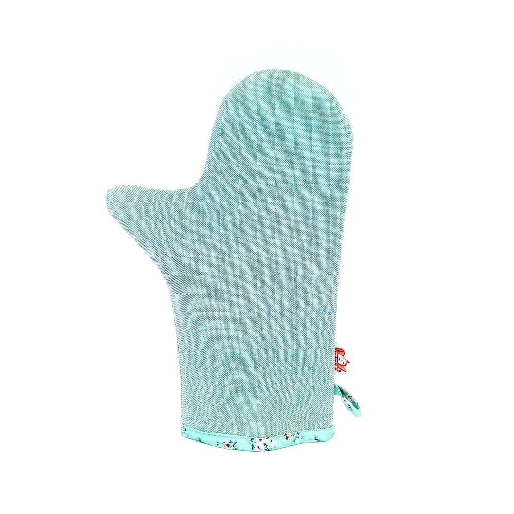 Kuchyňská chňapka Zelenkavá režná je ušitá ze směsové látky vyšší gramáže.