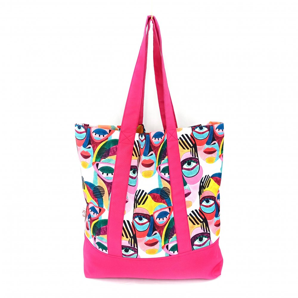 Nákupka z kočárkoviny Tváře je ušitá z kočárkoviny s veselým potiskem.
