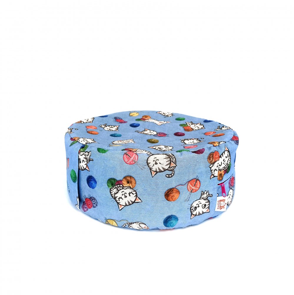 Pohankový sedák Kočky s klubíčky je ušitý ze směsové textilie vyšší gramáže.