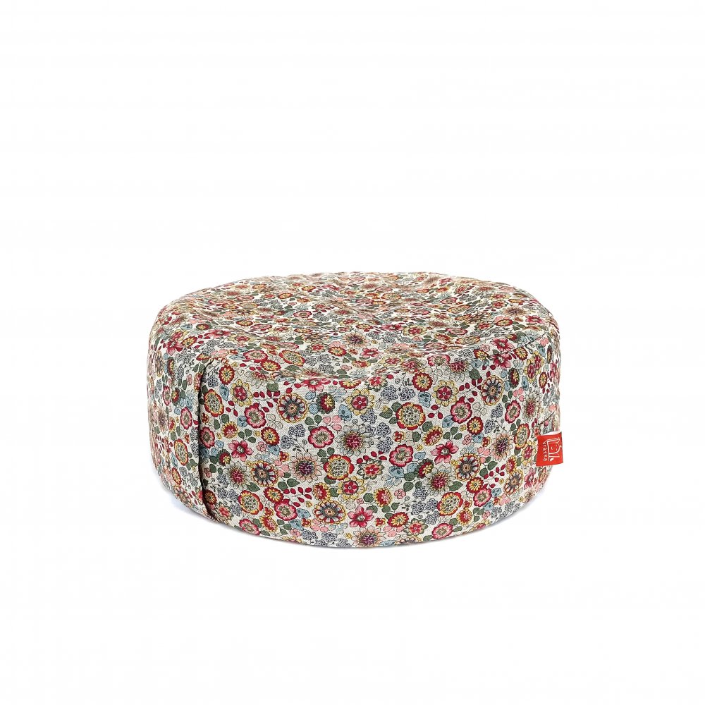 Pohankový sedák Kytičky na režné je ušitý ze směsové textilie vyšší gramáže.
