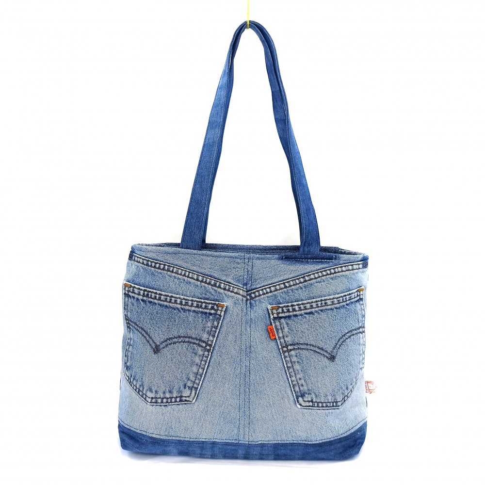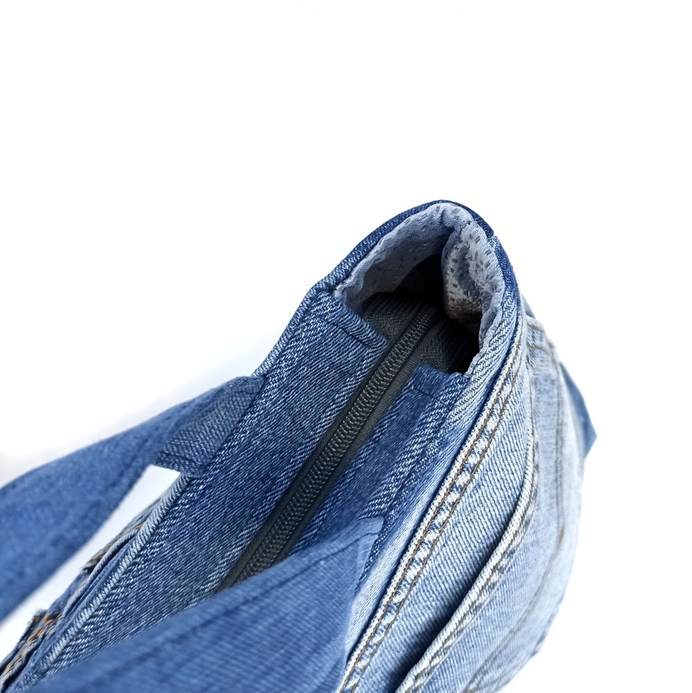 RECYklovaná kabelka Kapsy je vyrobená z darovaných riflí a kvalitní oblekové podšívkoviny.